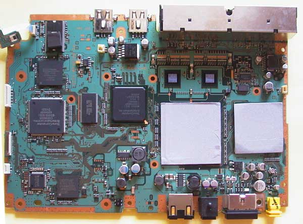 The PlayStation 2 doesn’t fare much better. In fact, it may be worse. At least Xbox had a much more clear edge in hardware power over the GameCube to partially justify its size and complexity. The PlayStation 2 actually went through several motherboard revisions over its lifetime, eventually getting an entirely new, slim form factor four years after launch. But even that board doesn’t quite match the original (and as far as I know, the only) GameCube motherboard. (Again, apologies for the connectors in the picture; just look at the components. It’s hard to find good mobo porn…)